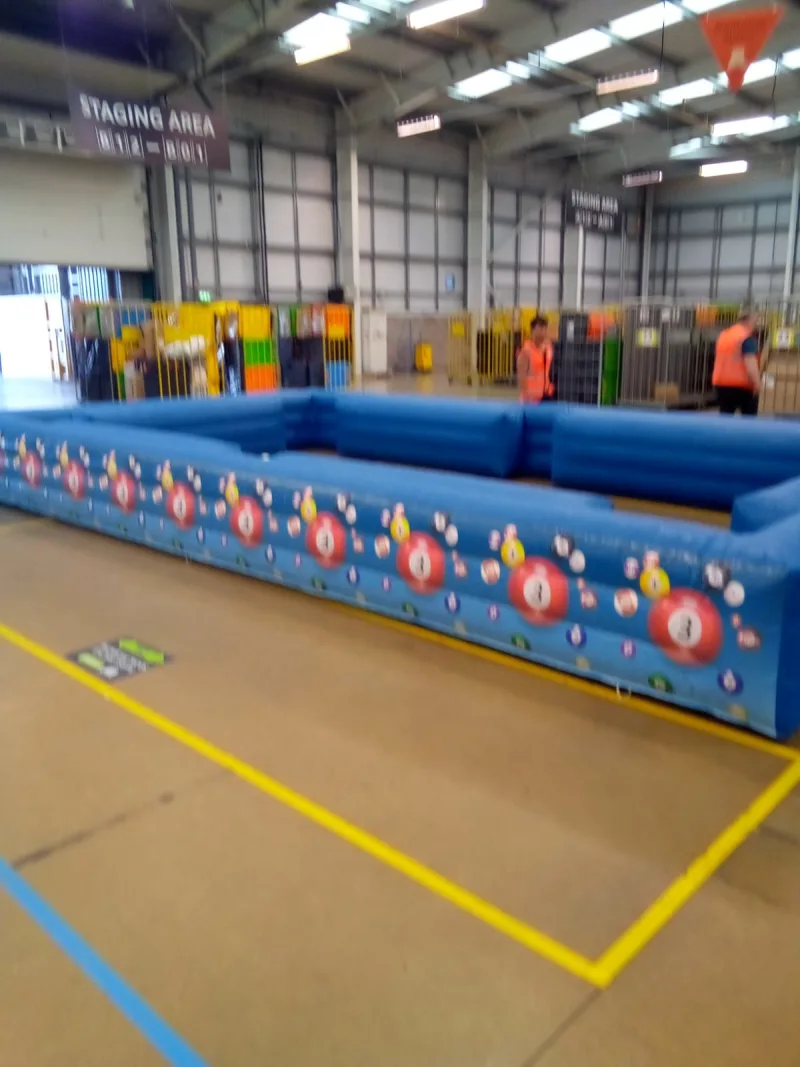 The table : A giant heavy duty inflatable perimeter that mimics a standard pool table.