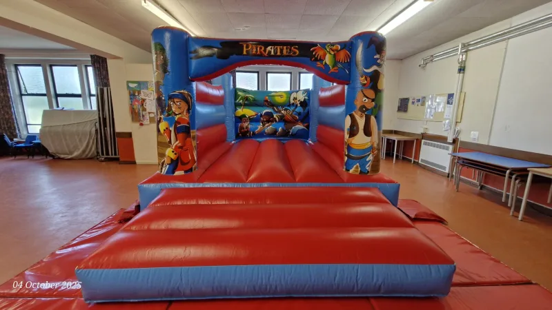 We have a low height 11ft x 15ft Pirate themed bouncy castle, perfect for low height venues, for your Buccaneers to jump and bounce.