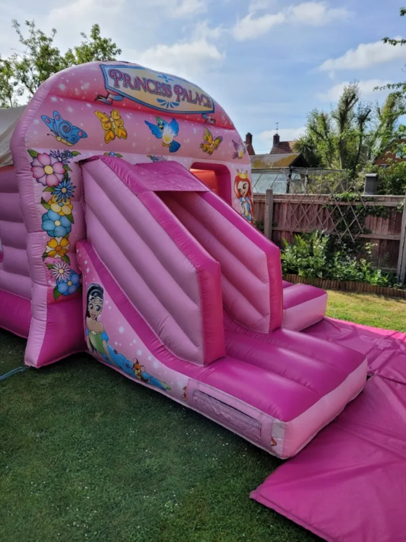 Princess Palace , make a little princess's party special with this bright and colourful princess palace party castle with front slide.