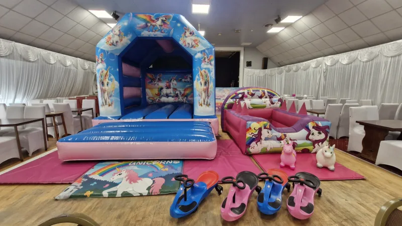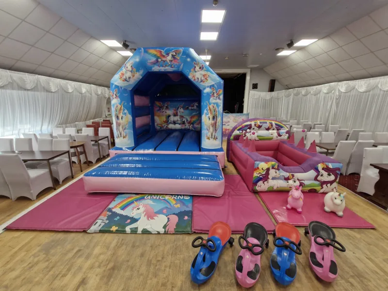 Our Unicorn Theme Bouncy castle is the star of the show, offering hours of bouncy fun and adventure.