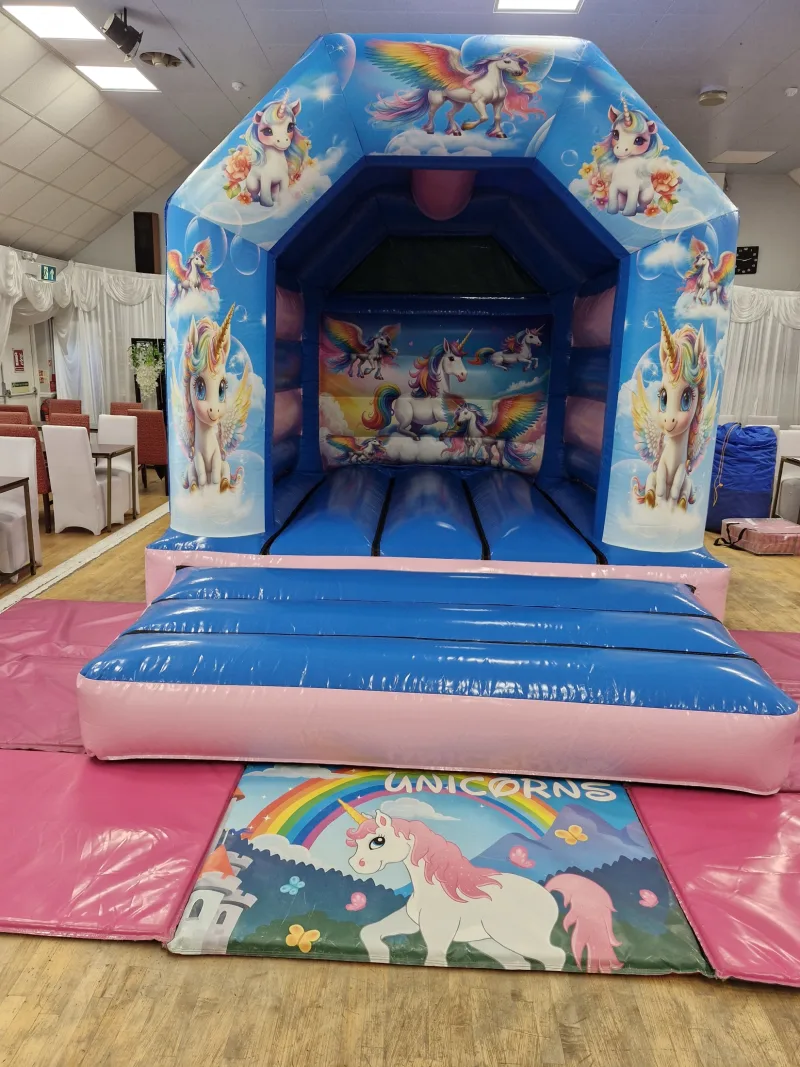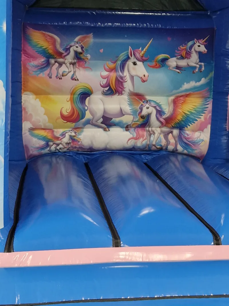 Bring the magic to your child's party with this fairytale unicorn theme bouncy castle,
